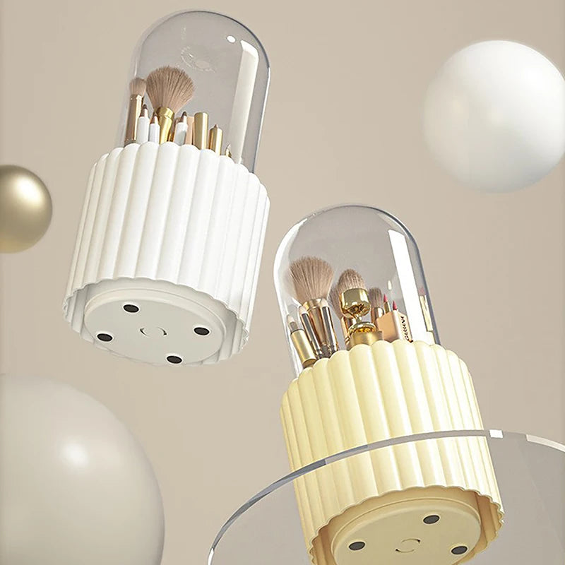 Keep your vanity neat and stylish with this 360° rotating organizer. It protects your brushes from dust while giving you easy access to your daily beauty essentials.